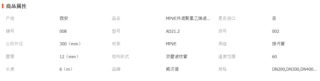 廠家供應(yīng)聚乙烯MPVE共混聚氯乙烯mpve雙壁波紋管排污排水 DN300